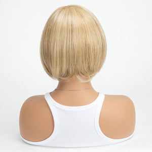 The Honey Luxe Bob features a sleek, chin-length cut with softly curved ends for a refined, natural look. Its light honey blonde shade is enhanced with subtle platinum highlights, adding depth and brightness to the overall style. The center part gives it a balanced and polished appearance, ideal for both everyday wear and formal occasions.